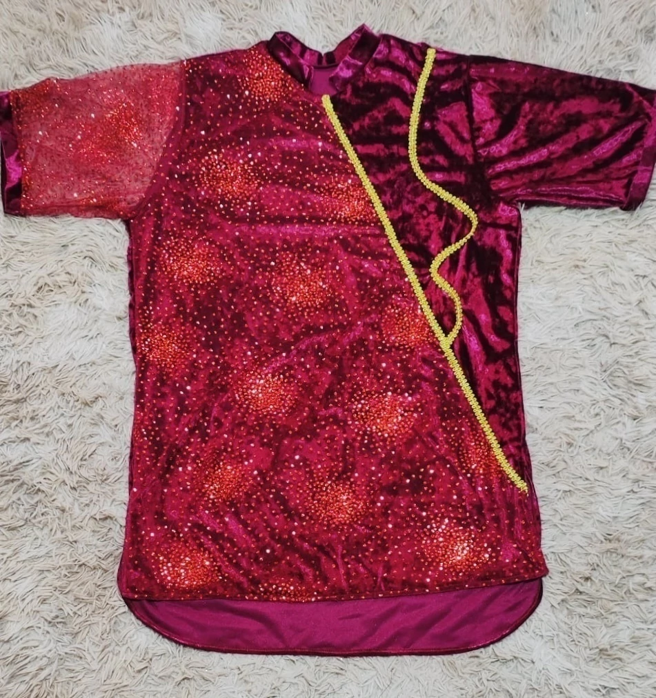 Bata masculina de veludo com tule explosão e aplique dourado.